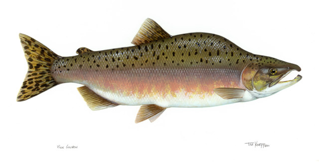 There are many varieties of salmon, living along the coasts of both the North Atlantic and Pacific Oceans. Only one variety lives in the Atlantic, whereas in the Pacific there are twelve varieties.