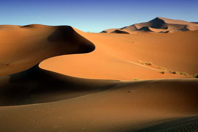 There are three kinds of deserts; rocky deserts, stony deserts and sandy deserts. Sandy deserts are the least common kind of desert, but it is where you find sand dunes.