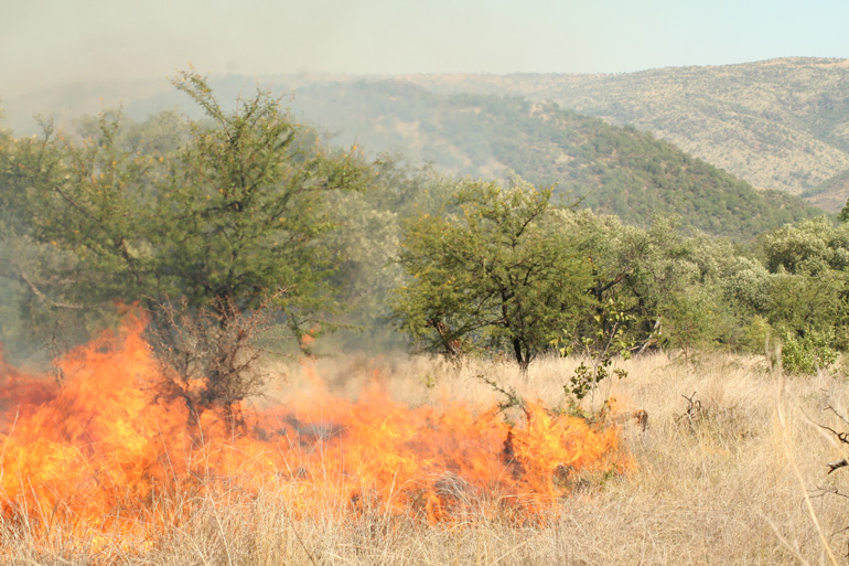 At the end of the dry season lightning is common, and then the savannas can catch fire. But this is quite natural and a way of recycling nourishment from the dried and dead grass stems.