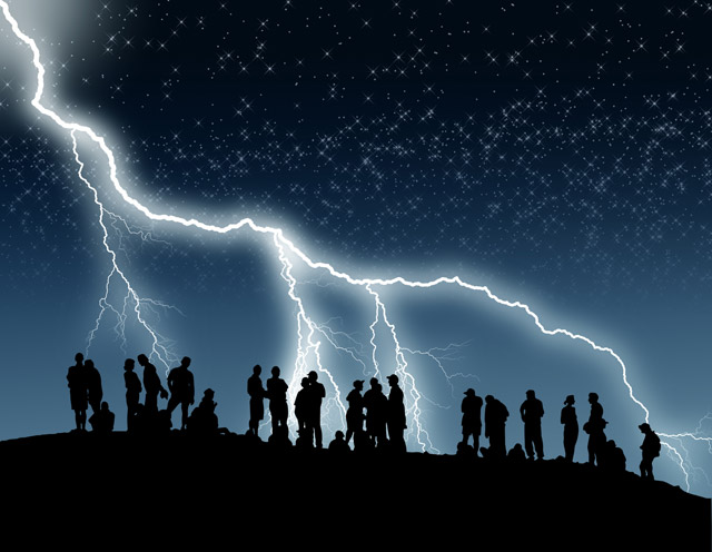 Silhouettes of people.