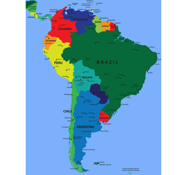 A map of South America.