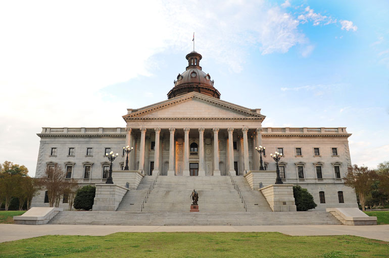 South Carolina is divided into two geographic regions by a fall line which runs through the center of the state. The fall line separates the sedimentary rocks of the Coastal Plain from the metamorphic rocks of the Piedmont and is where rivers form major rapids. The area northwest of the fall line, known as the upcountry, is part of the Piedmont Plateau. At the edge of the Piedmont are the Sandhills, which run diagonally across the center of the state from northeast to southwest. To the southeast is the low country, or The Coastal Plain. This region has a 187 mile (300 km) coastline which includes the Grand Strand - a beach stretching south from the North Carolina border for more than 100 miles (160 km). The Strand turns into the marshes of the Sea Islands, which extend into Georgia. The Blue Ridge Mountain region is in the northwestern corner of the state, and makes up just 2 percent of the state’s area. This area contains the highest point in South Carolina, Sassafras Mountain (3,560 feet/1,085 meters).