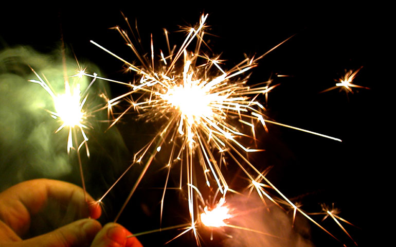 First, let's see how to make the sparks. Sparks are made when a metal like iron or aluminium is ground into a powder and then made very hot. The powder particles catch fire and glow very brightly for a fraction of a second.