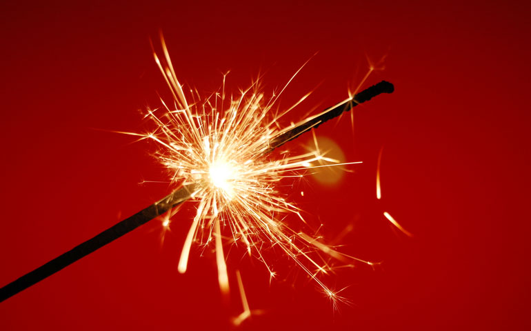 Sparklers are fast-burning things. As you know, burning needs a fuel, a source of oxygen and heat. Normally the heat might come from a match, the oxygen is in the air, and the fuel might be a piece of paper. But if you want something to burn faster and make a sparkler, you need more air.