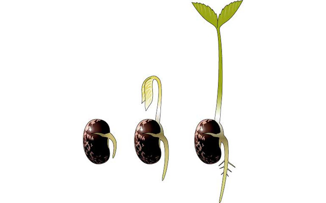 The root grows down, depending on the food in the seed for its survival. But it will use up the nourishment very quickly, so the next thing that happens is that a shoot begins to grow upwards. When it reaches the soil surface, it then spreads out its first leaves. The leaves use sunshine to make more food. At this point the new plant does not need its seed anymore and the sprouting part of its life has finished.