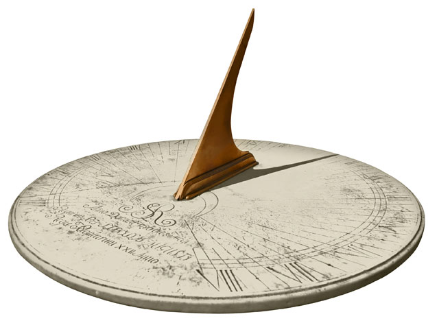 The first sundials were called shadow clocks. They were used by the Babylonians 3,000 years ago. A shadow clock is made by placing an upright stick in the ground and marking the place where the shadow falls with a stone. Every hour the position of the shadow is noted and marked with a stone. A semicircle of stones may be set up to mark each hour of sunlight and used every day to measure the passing of time.