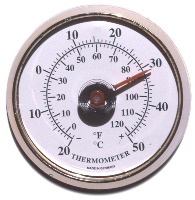 A thermometer showing the temperature.