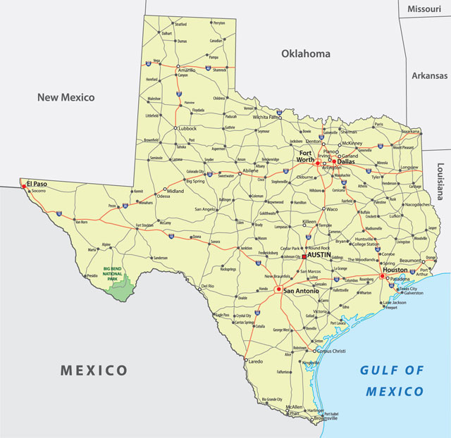 Texas’s has four major geographic areas: the Gulf Coastal Plain in the east and southeast; the North Central Plains, covering most of central Texas; the Great Plains, extending from west-central Texas up into the panhandle; and the mountainous trans-Pecos area in the extreme west.