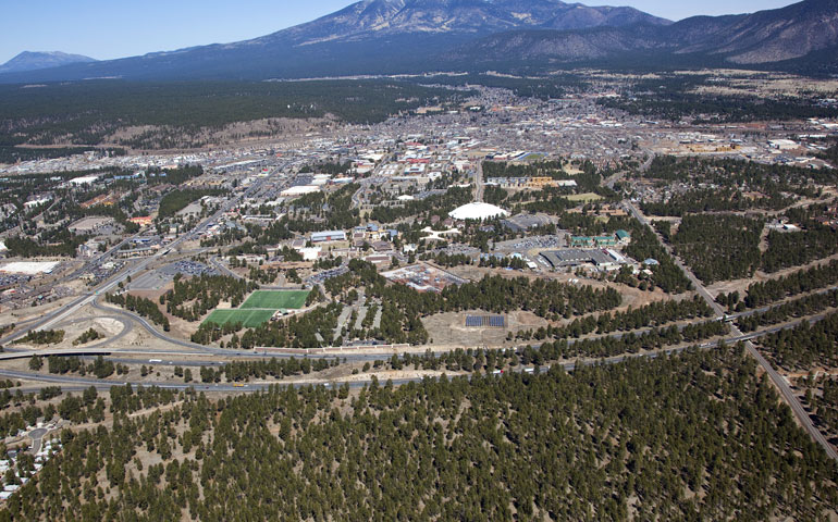 Villages tend to be names used for very old (historic) small places and are common in, for example, Europe and the eastern (colonial) part of the United States. In places which have developed more recently, people use 'small town' instead of village. So, for example, Americans talk of 'small-town America'. Villages and small towns are scattered all over the countryside and are surrounded by farmland. You will not find office blocks in villages and small towns.