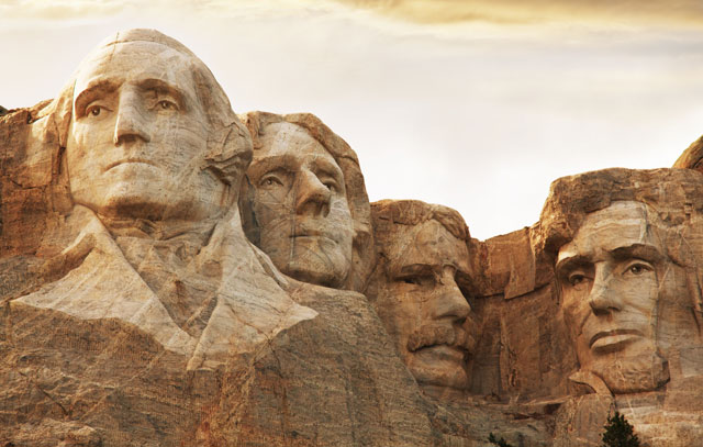 Mount Rushmore, with four US presidents carved into it to represent the first 130 years of the history of the United States.
