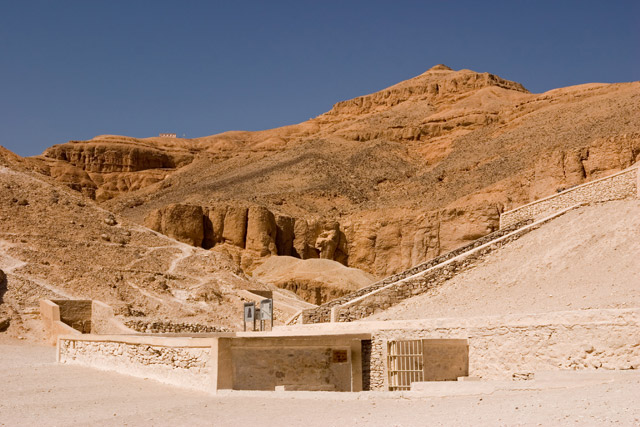 The first pharaohs ( of the Old Kingdom) were buried in huge tombs we call pyramids in Lower Egypt, near ancient Memphis (now Cairo). But these were far too expensive to continue building. As a result a new place had to be found, and the one chosen was close to the religious centre we know as Thebes. Some people think that the shape of the mountain above the valley area resembles a pyramid. You can see it in the picture above.