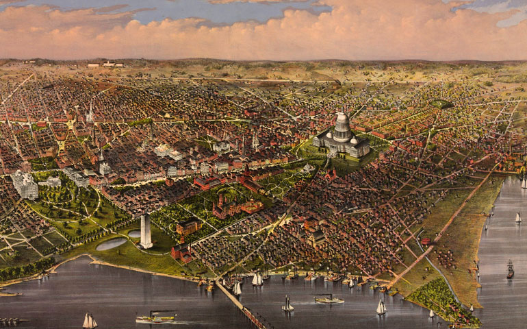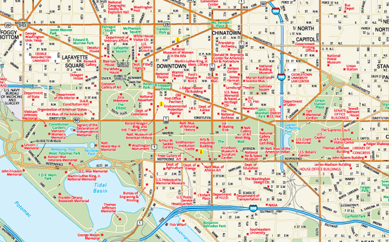 Superimposed on this grid were to be broad avenues, called boulevards, which would be named after the founding states. There were also to be open spaces in circles and plazas. These have since been named named after notable Americans.