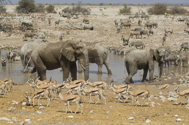 There is a strict ‘pecking order’ for drinking. If one of the big cats comes in sight, then most of the other animals flee. Only giant animals like elephants can drink at the same time.