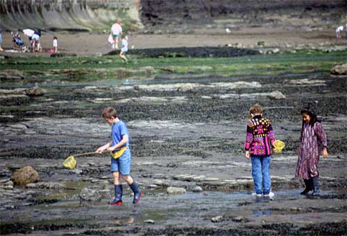 Searching for rockpool life on a wave-cut platform near Whitby.