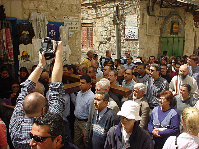 The Way contains markers corresponding to the Stations of the Cross. People stop at these markers in the street known as the Way of Sorrows (Via Dolorosa). The markers help people imagine the route to the crucifixion and resurrection of Jesus.