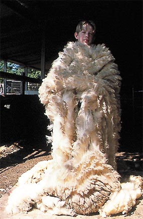 The woolly coat which is sheared from a sheep is called the fleece. It is divided up into different areas such as the back neck and shoulder. The fibres in each area are slightly different.