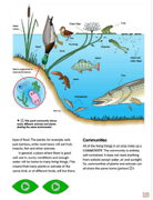 This pond community shows many different animals and plants sharing the same environment.