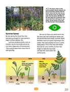 But just as these new plants burst into life, trees also start putting out leaves and the ground becomes shady. Summer plants therefore have to be good at growing in the shade. They have adapted to live in a partly shady place. This is why they have leaves that last for many months, so they have longer to make the food that