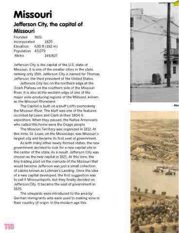 The Capitol is built on a bluff (cliff) overlooking the Missouri River. The bluff was one of the features recorded by Lewis and Clark in their 1804-6 expedition. When they passed, the Native Americans who called this home were the Osage people.