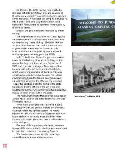 The original capital of Alaska was Sitka, a place chosen because of its importance in the profitable fur and whaling trades. But by 1906 both of these activities had declined, and that is when the seat of government was moved to Juneau. At this
