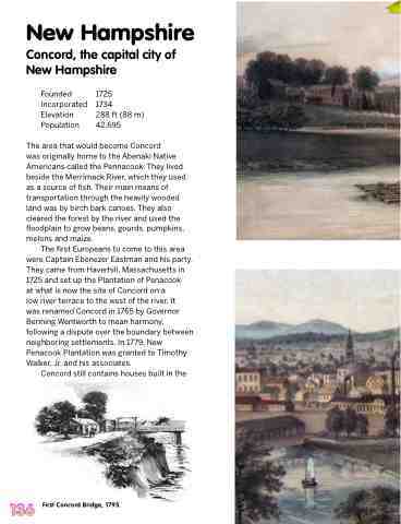 was originally home to the Abenaki Native Americans called the Pennacook. They lived beside the Merrimack River, which they used as a source of fish. Their main means of transportation through the heavily wooded land was by birch bark canoes. They also cleared the forest by the river and used the floodplain to grow beans, gourds, pumpkins, melons and maize.