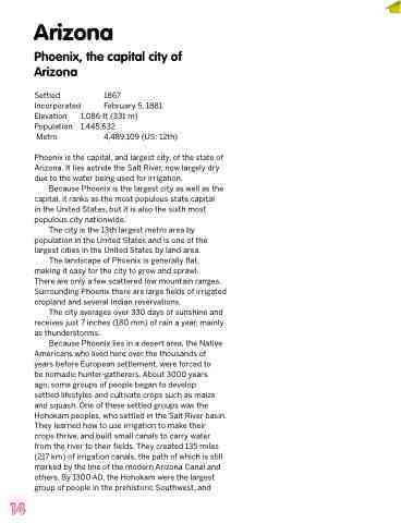settled lifestyles and cultivate crops such as maize and squash. One of these settled groups was the Hohokam peoples, who settled in the Salt River basin. They learned how to use irrigation to make their crops thrive, and built small canals to carry water from the river to their fields. They created 135 miles (217 km) of irrigation canals, the path of which is still marked by the line of the modern Arizona Canal and others. By 1300 AD, the Hohokam were the largest group of people in the prehistoric Southwest, and