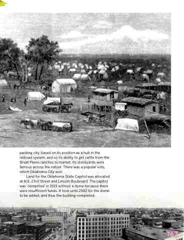 packing city, based on its position as a hub in the railroad system, and so its ability to get cattle from the Great Plains ranches to market. Its stockyards were famous across the nation. There was a popular vote, which Oklahoma City won.