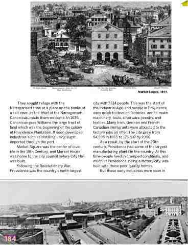 city with 7,614 people. This was the start of the Industrial Age, and people in Providence were quick to develop factories, and to make machinery, tools, silverware, jewelry, and textiles. Many Irish, German and French Canadian immigrants were attracted to the factory jobs on offer. The city grew from 54,595 in 1865 to 175,597 by 1900.