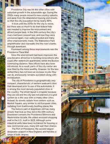 The historic part of downtown still has many streets that look as they did in the 19th century. Downtown contains the Providence Biltmore and Westminster Arcade, the oldest enclosed shopping mall in the U.S., built in 1828. Although some industrial units have been revitalized for housing or new commercial uses, many still wait their chance.