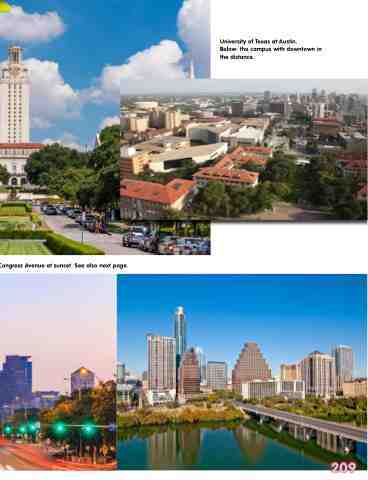 ongress Avenue at sunset. See also next page. University of Texas at Austin. Below: the campus with downtown in the distance. 209 C