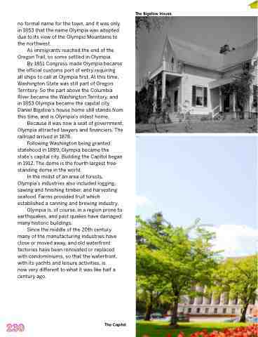all ships to call at Olympia first. At this time, Washington State was still part of Oregon Territory. So the part above the Columbia River became the Washington Territory, and in 1853 Olympia became the capital city. Daniel Bigelow’s house home still stands from this time, and is Olympia’s oldest home.