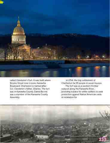 called Clendenin’s Fort. It was built where Brooks Street now crosses Kanawha Boulevard. Charleston is named after Col. Clendenin’s father, Charles. The fort was in Kanawha County. Daniel Boone was a member of the Kanawha County Assembly.