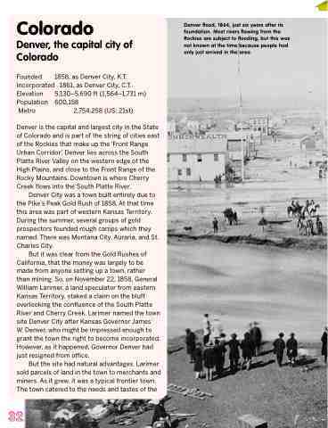 Denver flood, 1864, just six years after its foundation. Most rivers flowing from the Rockies are subject to flooding, but this was not known at the time because people had only just arrived in the area.
