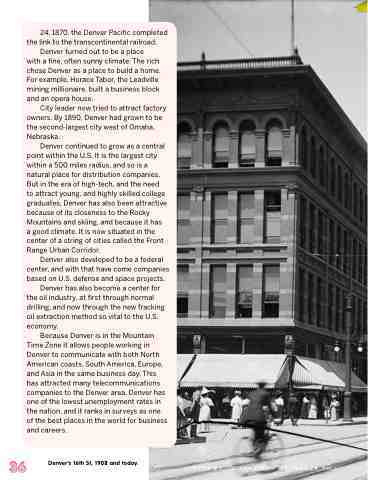 with a fine, often sunny climate. The rich chose Denver as a place to build a home. For example, Horace Tabor, the Leadville mining millionaire, built a business block and an opera house.