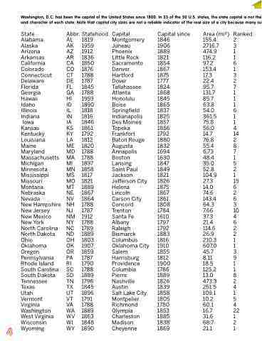 Washington, D.C. has been the capital of the United States since 1800. In 33 of the 50 U.S. states, the state capital is not the and character of each state. Note that capital city sizes are not a reliable indicator of the real size of a city because many su