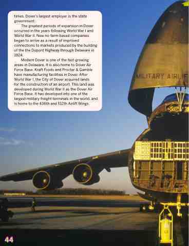 for the construction of an airport. This land was developed during World War II as the Dover Air Force Base. It has developed into one of the largest military freight terminals in the world, and is home to the 436th and 512th Airlift Wings.