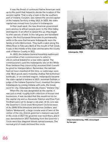 site in central Indiana for a new state capital. The commissioners used the Indianapolis site on the White River because they (incorrectly) assumed that it would be good for transportation. Remember, the railroad