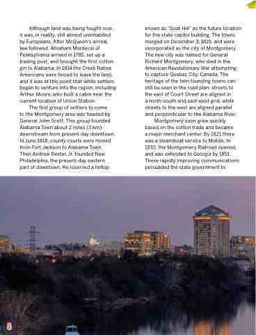 known as “Goat Hill” as the future location for the state capitol building. The towns merged on December 3, 1819, and were incorporated as the city of Montgomery. The new city was named for General Richard Montgomery, who died in the American Revolutionary War attempting to capture Quebec City, Canada. The heritage of the twin founding towns can still be seen in the road plan: streets to the east of Court Street are aligned in